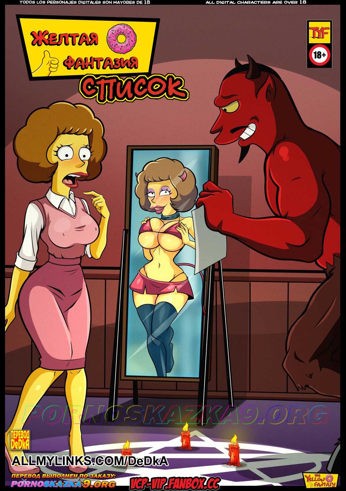 Порно комикс «Симпсоны. Часть 51. Месть Мардж.» Жаждущая секса Мардж входит в спальню и видит своего мужа храпящим! Воспользовавшись тем, что Гомер крепко спит, пылкая женщина решает проверить его мобильный телефон, который не перестает вибрировать… Просматривая сообщения в Whatsapp, Мардж вскоре обнаруживает, что Гомер перетрахал всех ее лучших подруг…